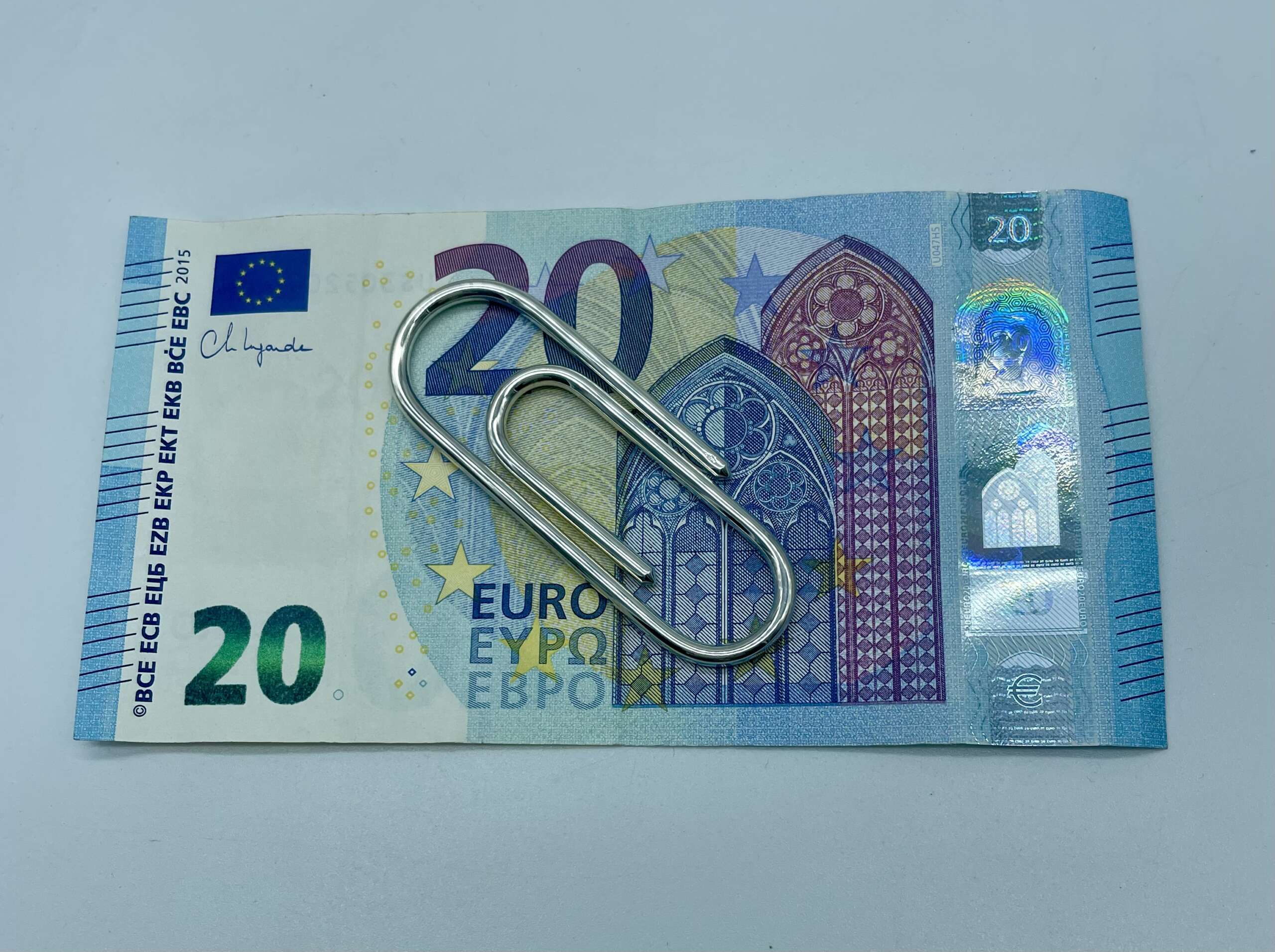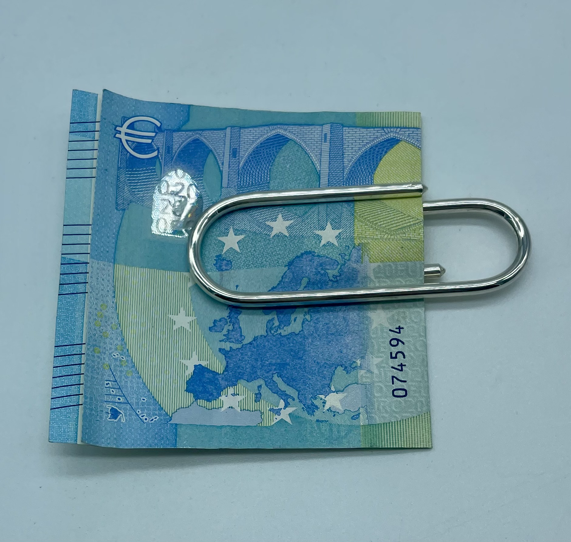 Cette pince à billets en argent en forme de trombone a été fabriquée en argent massif par nos orfèvres et artisans spécialisés en argenterie.